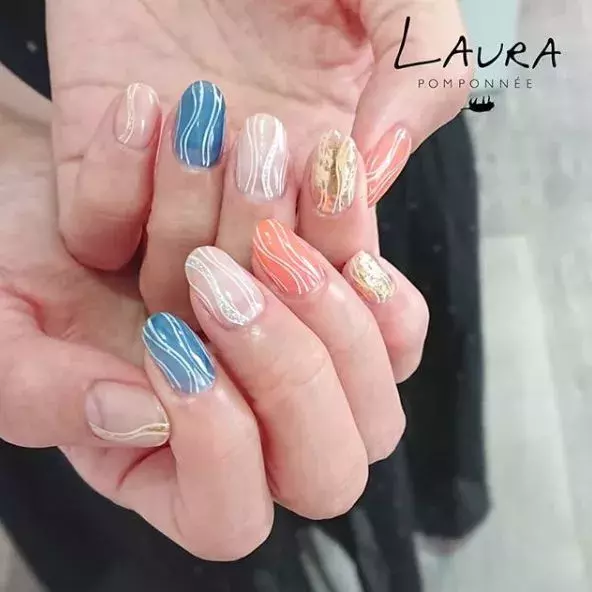 色数が多くても派手にならない 組み合わせで楽しむ 3色ネイル で指先に彩りを キナリノ
